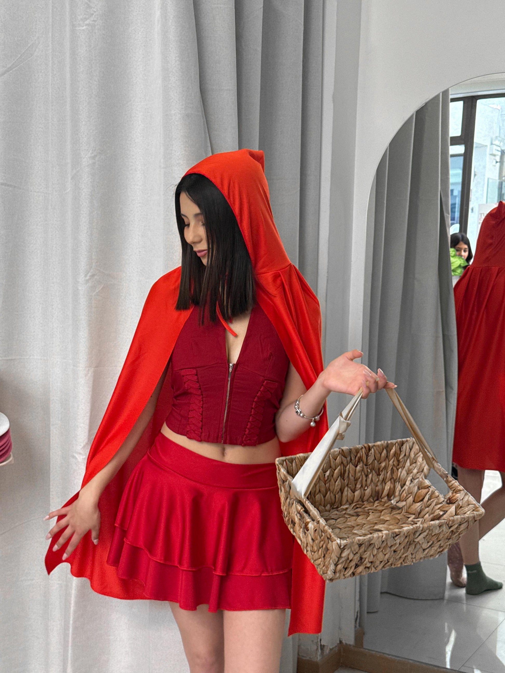 🎃 ¿Qué incluye? Top + falda + capa con gorro.