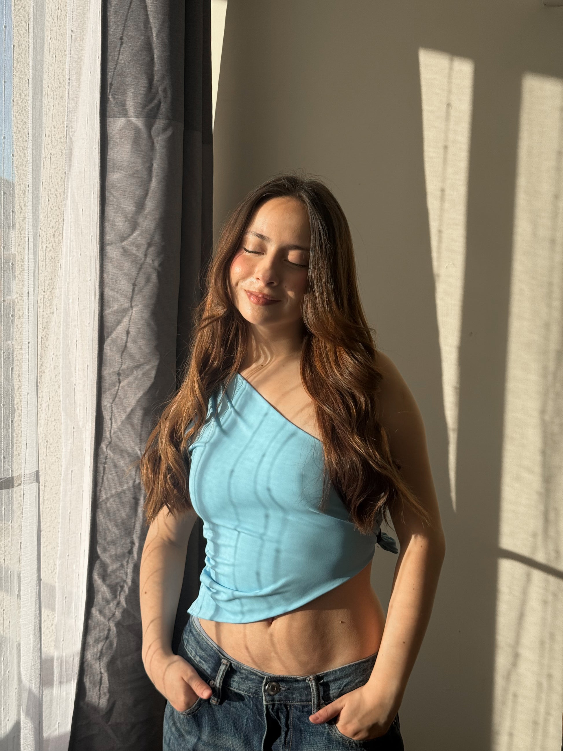 TOP ASIMETRICO CELESTE