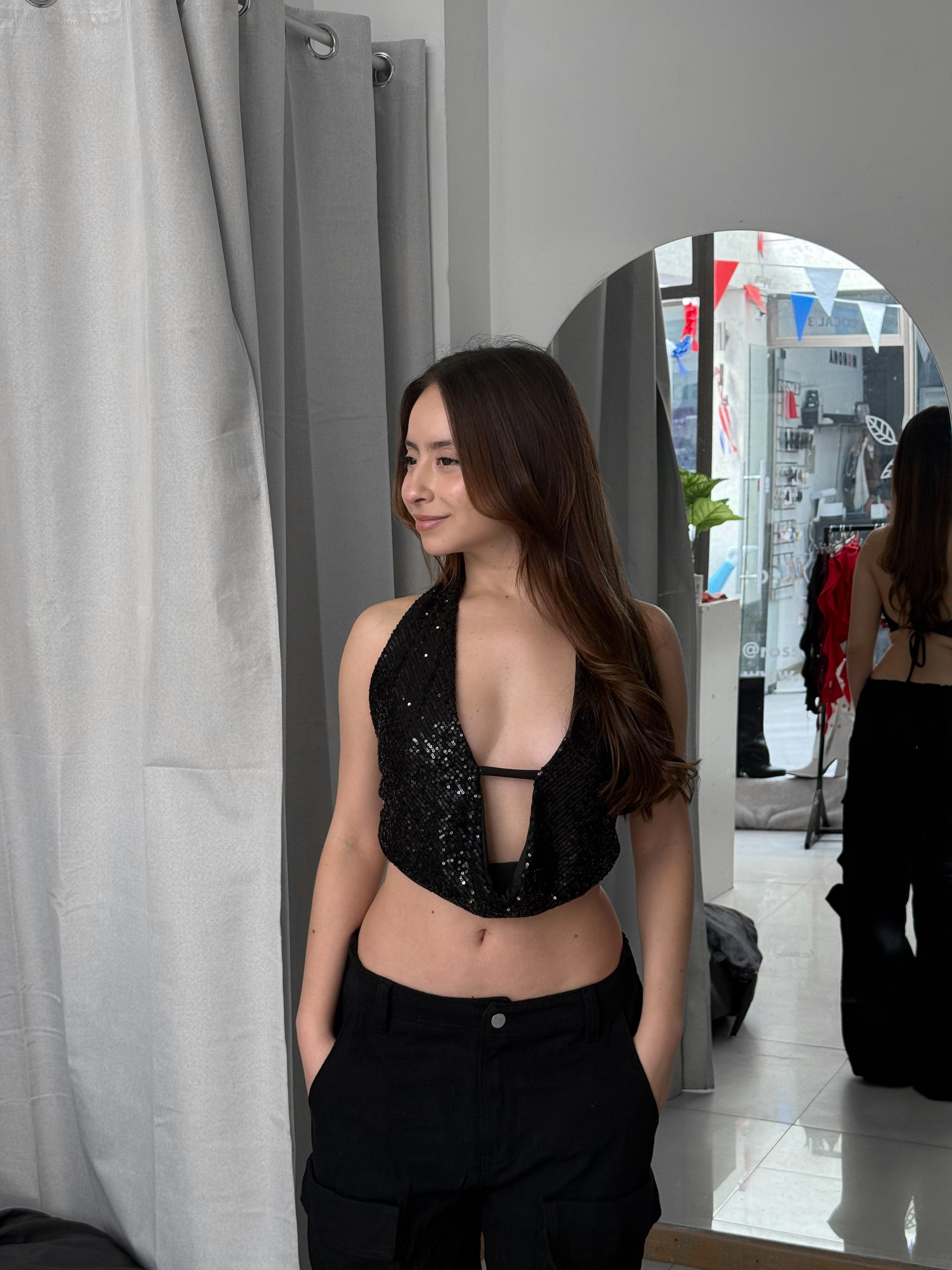 🔸 Tela: Lentejuelas (pecho forrado en Lycra)
